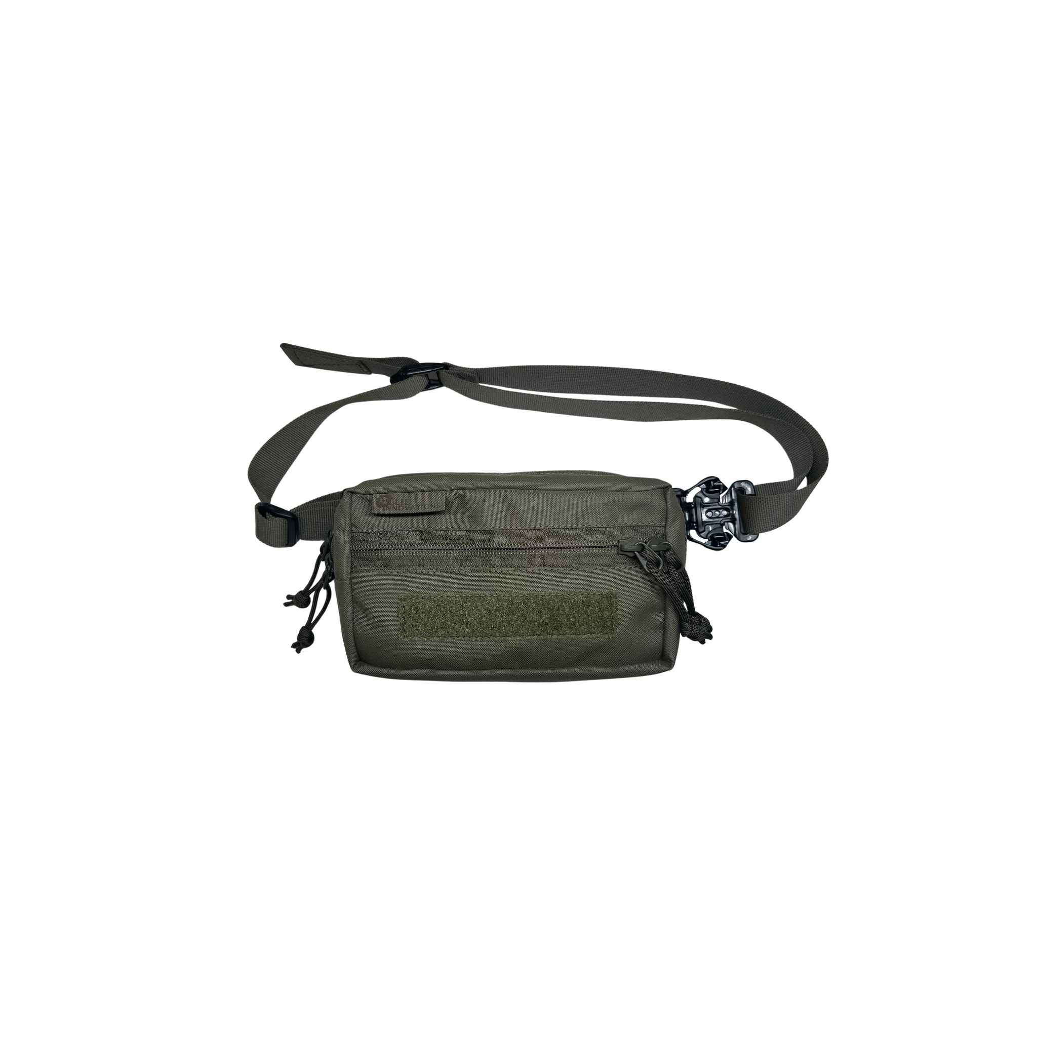 The main compartment features a fully lined velcro loop back wall and a pocket on the front wall for storage of various items. This compartment is capable of carrying non-MOS subcompact pistols such as the Glock 43X, Springfield Armory Hellcat and other subcompact firearms utilizing a trigger guard holster.
